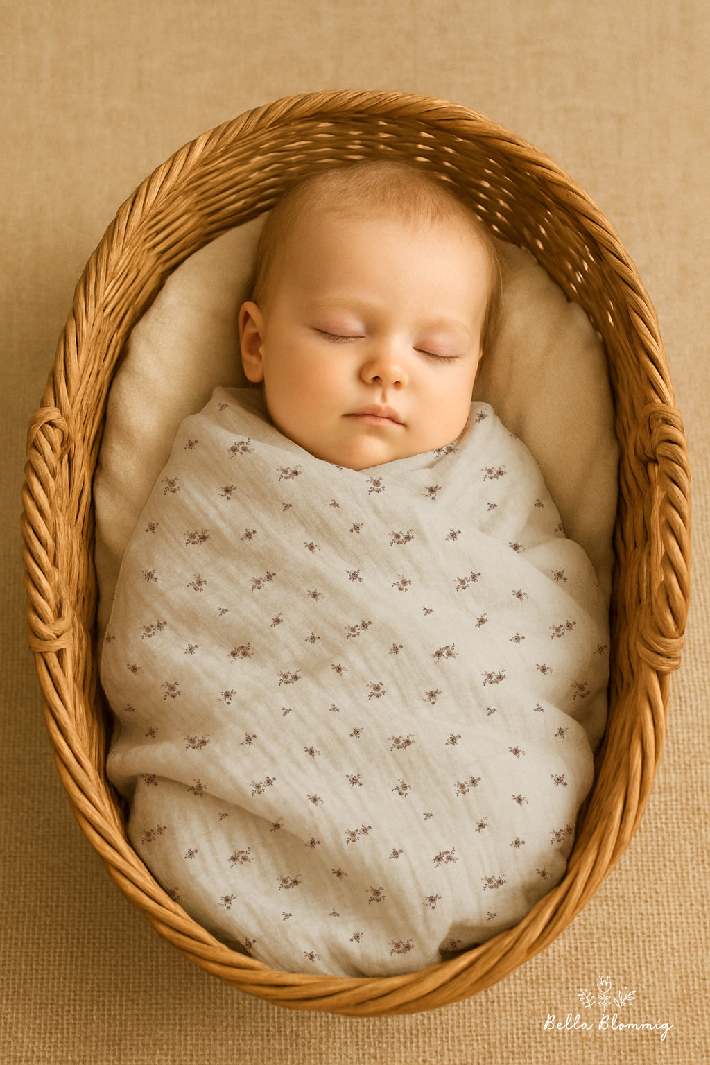 Der Musselin-Stoff ist für den Gebrauch im Innenbereich und für den direkten Hautkontakt geeignet. Vor der ersten Verwendung wird eine Wäsche empfohlen, um Reststoffe aus der Produktion zu entfernen.
