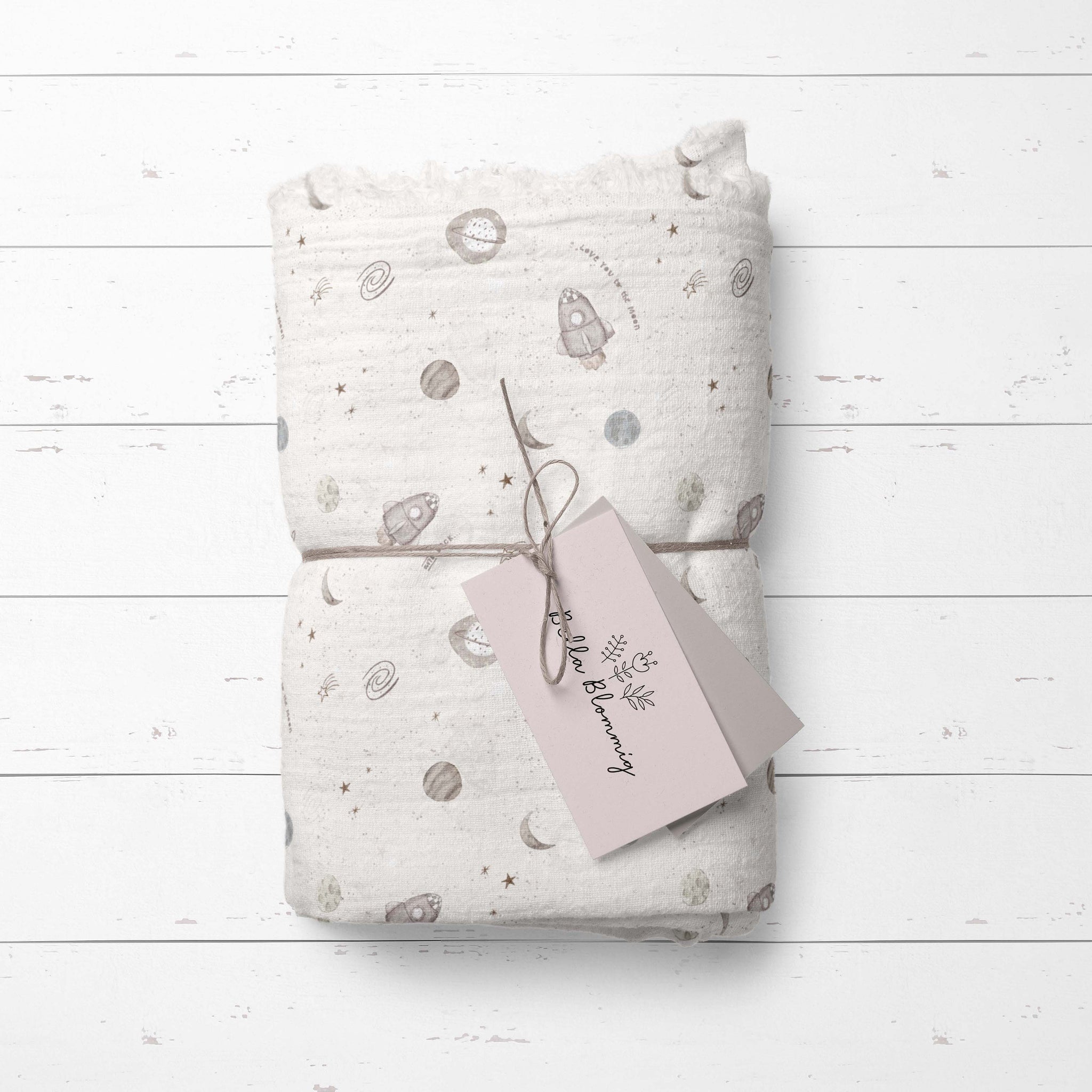Der Musselin-Stoff ist für den Gebrauch im Innenbereich und für den direkten Hautkontakt geeignet. Vor der ersten Verwendung wird eine Wäsche empfohlen, um Reststoffe aus der Produktion zu entfernen.