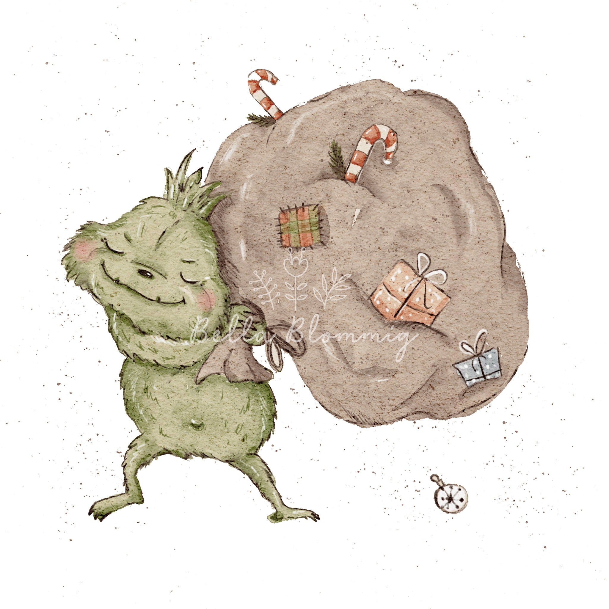 Jetzt gibt es auch das Weihnachtsgrummelchen als Bügelbild.