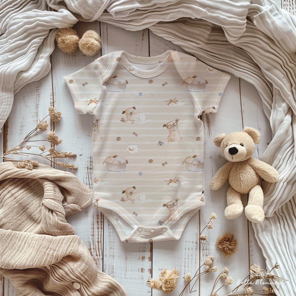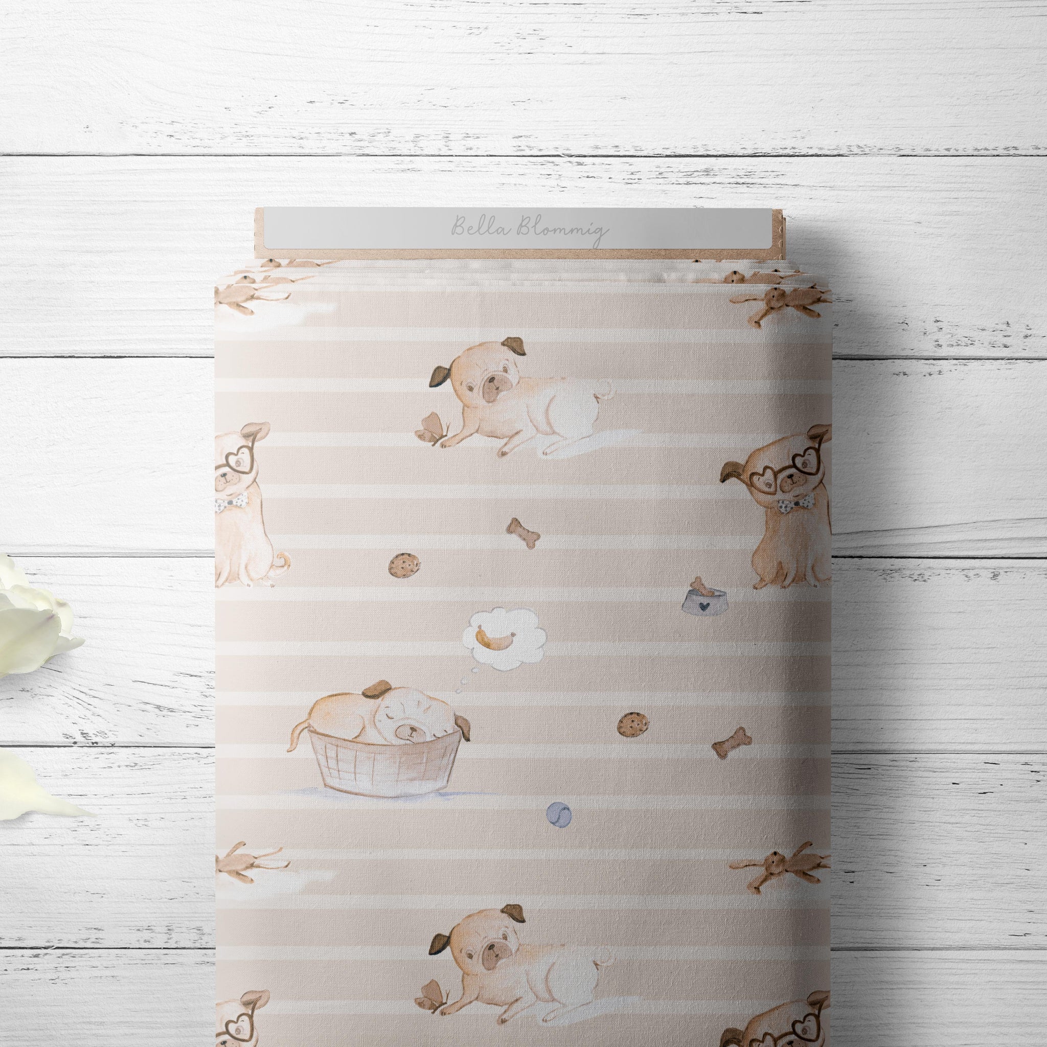 Stoffdesign Digitale Datei - Mopsliebe - hellbraun Streifen